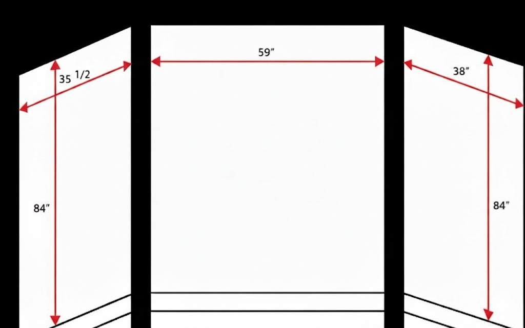 Two 36 x 80 Panels One 60 x 60 Panel Two Outside corner Trim 80" Two Edge trim 80" Two Inside trim 80